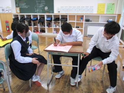 1年1限 「総合的な学習の時間(楡の木タイム)」 公開日 2021/10/06 更新日 2021/10/06 日々の活動から 10月6日(水) 1年生の 「総合的な学習の時間(楡の木タイム)」の様子です。 明日の校外学習で行くYKKセンターパークについて事前学習しました。 その後、係活動の掲示物を作りました。