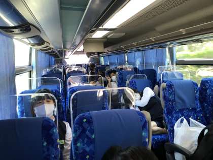 14:40頃 バスに乗り、芝政ワールドを後にしました。 20分ほど早く出発しています。