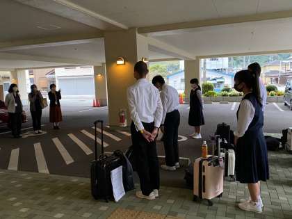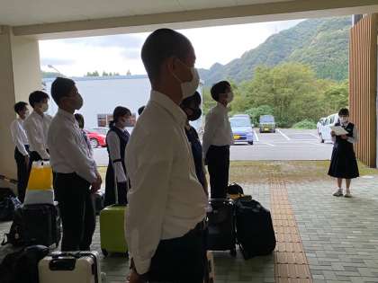 帰着式では、最初に出迎えてくれた教職員に挨拶をして、その後、代表生徒の言葉、鍋田校長の話がありました。