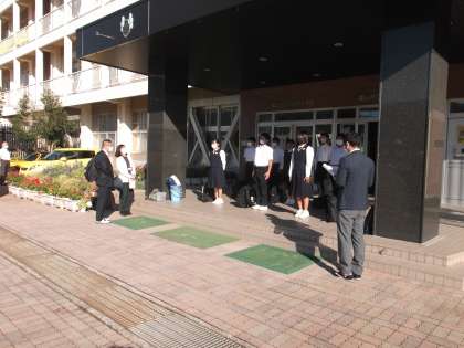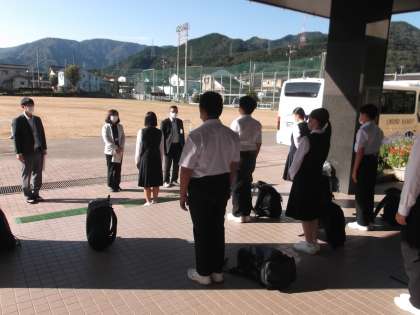 1年 校外学習 公開日 2021/10/07 更新日 2021/10/07 日々の活動から 10月7日(木) 本日、1年生が校外学習に出かけました。 今日は、「身近なSDGsと私たちのかかわり」という学習テーマで、環日本海環境協力センター、岩瀬浜、YKKセンターパークへ行って、学習してきます。 画像は、出発式の様子です。 引率教員への挨拶の場面です。