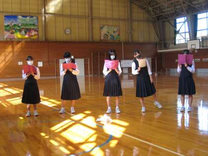学習発表会に向けての合唱練習で「もみじ」「群青」「コスモス」を練習しました。