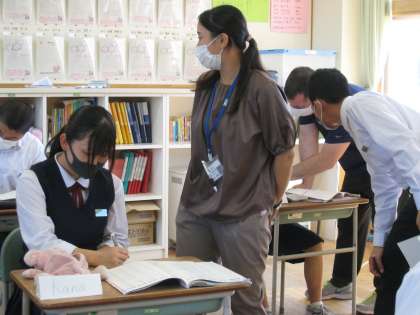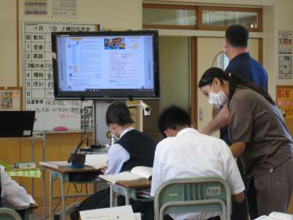 3年2限 英語 公開日 2021/10/07 更新日 2021/10/07 日々の活動から 10月7日(木) 3年生の英語の授業の様子です。 受け身形について学習しました。 今日はALTのグレッグ先生が来てくださいました。