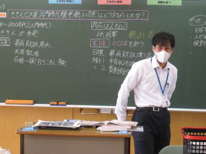 2年4限 社会 公開日 2021/10/07 更新日 2021/10/07 日々の活動から 10月7日(木) 2年生の社会の授業の様子です。 江戸時代、大飢饉の状況と吉宗の具体的な対応について学びました。