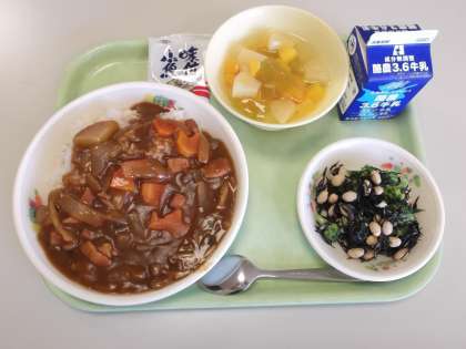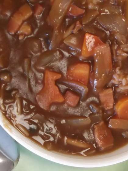 今日は「食べキリンハヤシ」の中に、キリンのような型抜きされた《にんじん》がいくつか入っていました。