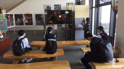 職員の方に案内していただきながら、曳山の歴史やおわら文化について学習しています。