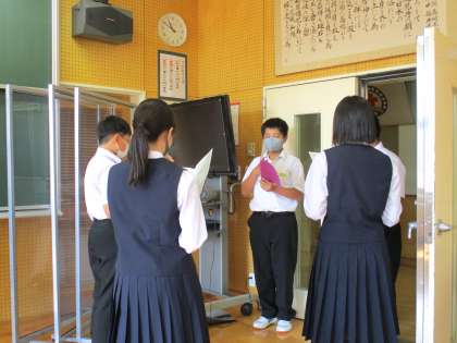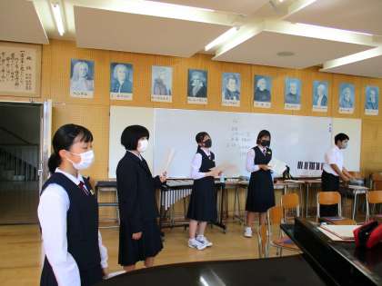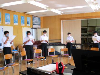 1年3限 音楽 公開日 2021/10/08 更新日 2021/10/08 日々の活動から 10月8日(金) 1年生の音楽の授業の様子です。 合唱曲2曲のパート練習をしていました。 また、小中合同で歌う予定の「もみじ」の練習もしていました。