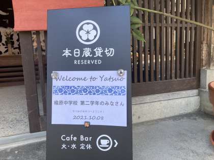 2年 校外学習 公開日 2021/10/08 更新日 2021/10/08 日々の活動から 10月8日(金) 越中八尾ベースOYATSUの入口です。 昼食場所 兼 午後に講演会を聞く予定です。 この時期は街中で「坂のまちアート」を開催しているそうです。