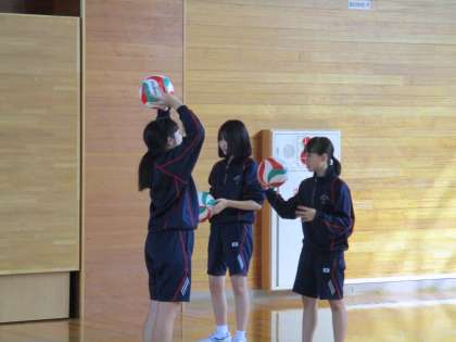 3年6限 保健体育 公開日 2021/10/08 更新日 2021/10/08 日々の活動から 10月8日(金) 3年生の保健体育の授業の様子です。 今日からバレーボールが始まりました。 オーバーハンドパスとアンダーハンドパスの練習が主でした。