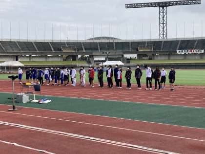 市新人大会 陸上競技 公開日 2021/10/09 更新日 2021/10/09 部活動 10月9日(土) 本日、県総合運動公園陸上競技場にて市新人大会が行われました。 開会式に学校代表として出場しました。 また、競技は、1年女子100メートルに出場しました。 一生懸命走りました。 補助役員としてもハードルを並べる係もしました。 来年の大会まで、また力をつけて頑張っていきましょう。