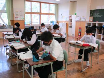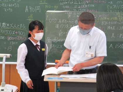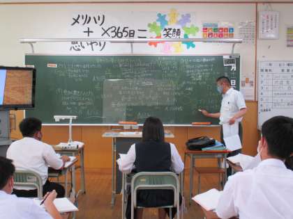 1年3限 数学 公開日 2021/10/11 更新日 2021/10/11 日々の活動から 10月11日(月) 1年生の数学の授業の様子です。 「方程式の利用」の復習をしました。 提出物を出す生徒もいました。