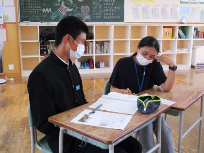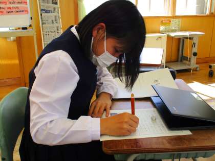 2年3限 「総合的な学習の時間(楡の木タイム)」 公開日 2021/10/11 更新日 2021/10/11 日々の活動から 10月11日(月) 2年生の「総合的な学習の時間(楡の木タイム)」の様子です。 八尾校外学習のまとめをしました。