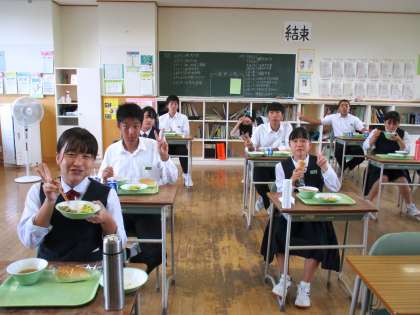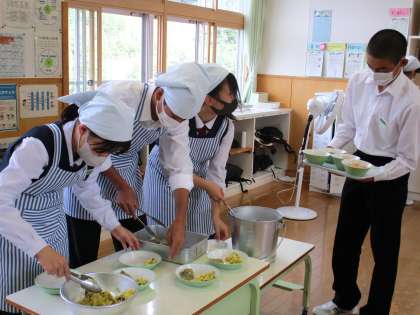 10月11日(月) 3年生の給食風景です。