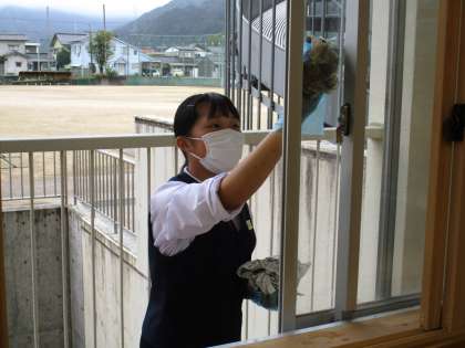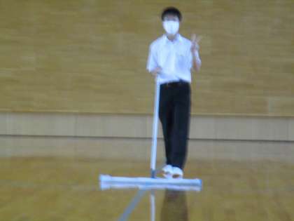 10月11日(月) 限られた時間に隅々まできれいにしています。 写真が好きな生徒がポーズをしてくれました。