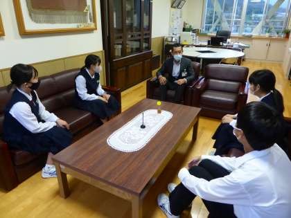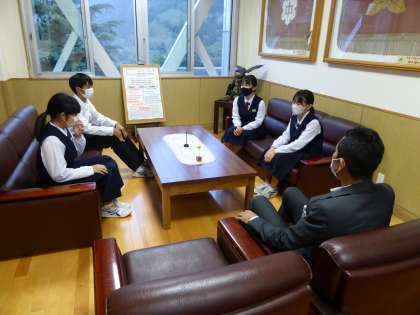 放課後、本日退任式のあった前期生徒会執行部の生徒が校長室を訪問しました。