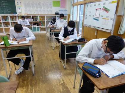 3年1限 数学 公開日 2021/10/12 更新日 2021/10/12 日々の活動から 10月12日(火) 3年生の数学の授業の様子です。 中間考査に向けて各自が必要な課題を行いました。 提出物を見せる生徒が増えてきました。 積極的に何度も質問する生徒もいました。
