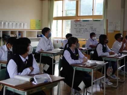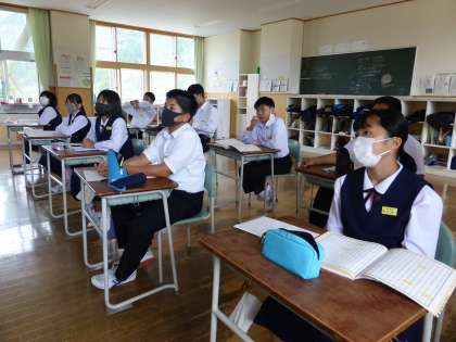 10月12日(火) 1年生の国語の授業の様子です。 行書について学んでいました。
