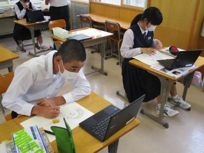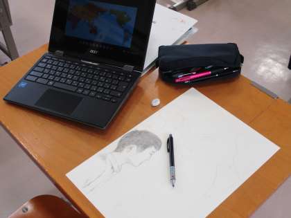 3年3限 美術 公開日 2021/10/12 更新日 2021/10/12 日々の活動から 10月12日(火) 3年生の美術の授業の様子です。 自画像の下書きをしていました。 着色に進んだ生徒もいました。