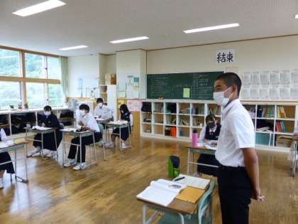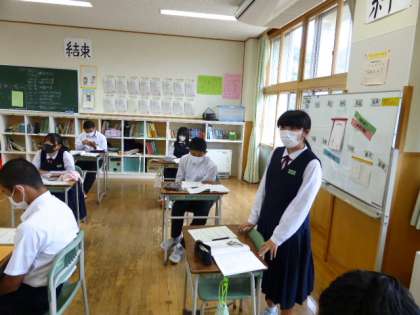 3年2限 道徳 公開日 2021/10/13 更新日 2021/10/13 日々の活動から 10月13日(水) 3年生の道徳の授業の様子です。 「くちびるに歌をもて」という物語を読んで話し合いました。 船が難破した時、主人公が歌を聞き、その方向に泳いでいくと歌を歌っていたお嬢さんがいた・・・という内容でした。 絶体絶命の時に自分ならどうするのか? このお嬢さんのように歌えるか?