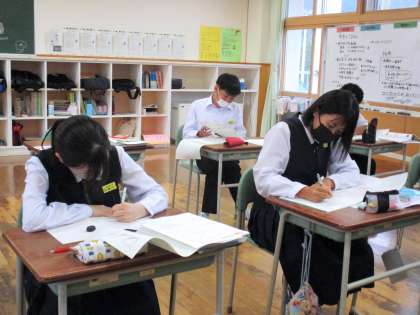 明日の中間考査に向けて予想問題に取り組みました。