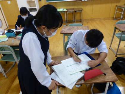 本日のSLの会 公開日 2021/10/13 更新日 2021/10/13 日々の活動から 10月13日(水) 本日放課後、視聴覚室にてSLの会を行いました。 学年を超えて学び合う姿や、同学年同士で学び合う姿が見られました。 個人で学習する姿も見られました。 積極的に何度も質問に来る生徒もいました。 今後も「SLの会」を有効活用しましょう!