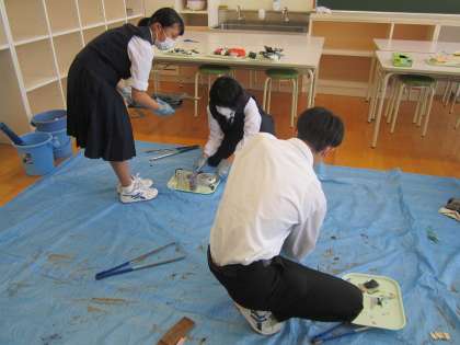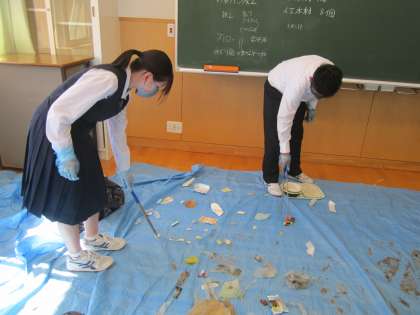 先日の校外学習で拾ってきた海洋ゴミの個数を数え、分類しました。