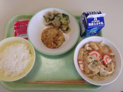 今日は「昆布あえ」の中に星型の《大根》と花型の《きゅうり》が入っていました。