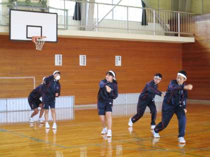 4限 体育大会練習 団別練習 公開日 2021/10/18 更新日 2021/10/18 日々の活動から 10月18日(月) 4限目の後半は、団別練習の時間を取りました。 白虎団の団別練習です。 3年生が下級生に教えていました。