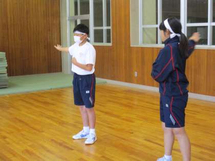 はじめは、3年生が1、2年生にマンツーマンで振り付けを教えていました。