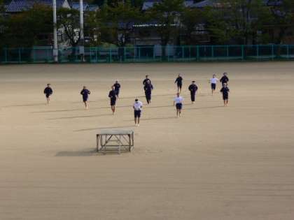 10月18日(月) 後半は、グラウンドで練習しました。 タイムを計測しながら練習していました。