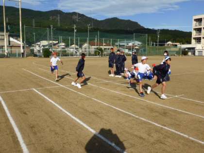 入退場の練習後に小学生と一緒に一通り最後まで走りました。
