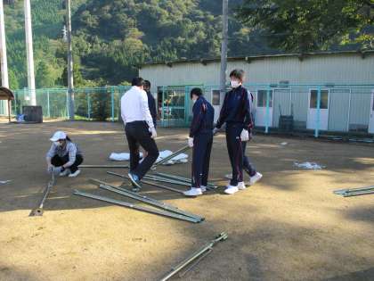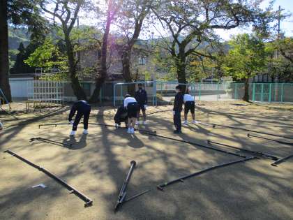 10月19日(火) 明日の予行練習に備え、みんなでテントを設営しました。