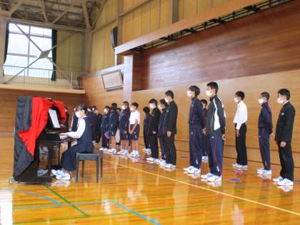 10月20日(水) 後半は全員で体育館で合唱しました。