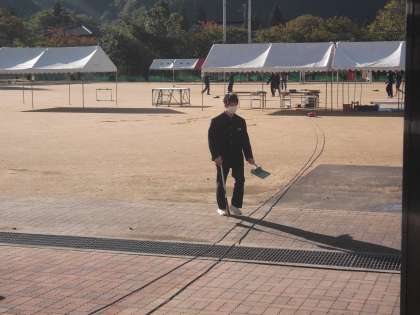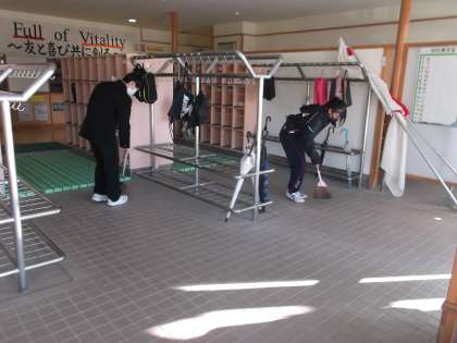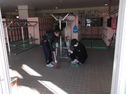 環境実践部 朝清掃 公開日 2021/10/21 更新日 2021/10/21 日々の活動から 10月21日(木) 今朝は後期環境実践部員の3年生2名が生徒玄関をキレイに掃除をしてくれました。 現在、体育大会練習を行っているので、かなりの砂が生徒玄関に入り込んでいます。 それを3年生がきれいに掃き取ってくれました。