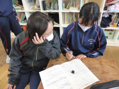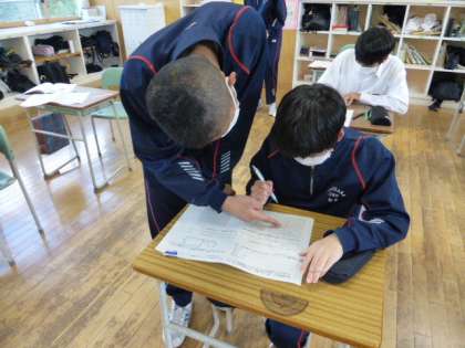 3年6限 数学 公開日 2021/10/21 更新日 2021/10/21 日々の活動から 10月21日(木) 3年生の数学の授業の様子です。 中間考査の類似問題をもう一度解き直しました。 教え合い、学び合いをして、良い雰囲気でお互いに高め合っていました。