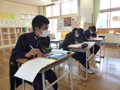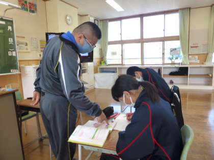 2年1限 数学 公開日 2021/10/22 更新日 2021/10/22 日々の活動から 10月22日(金) 2年生の数学の授業の様子です。 「平行線と同位角」「平行線と錯角」について学習していました。