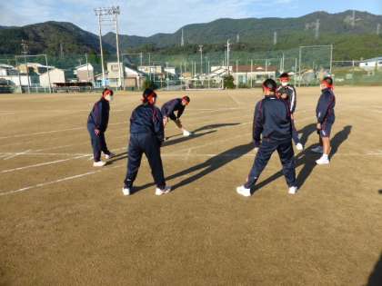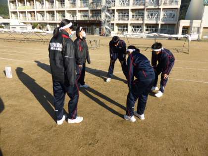 小中合同体育大会 選抜リレー練習 公開日 2021/10/22 更新日 2021/10/22 日々の活動から 10月22日(金) 絶好のコンディションのもとで本日も準備運動をしてから、バトンパス練習をしました。