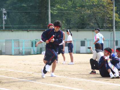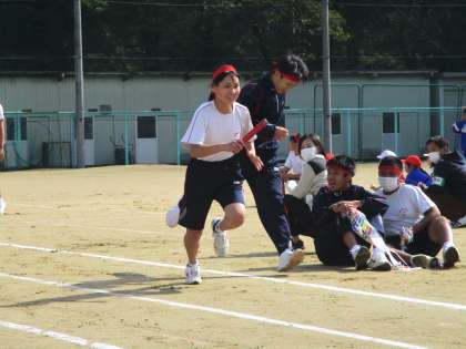 小中合同体育大会 朱雀団の選抜リレーの様子です。