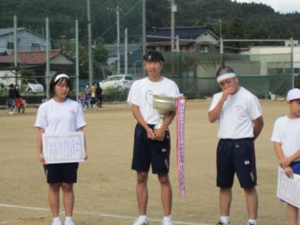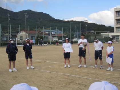 第5回 小中合同体育大会 解団式 公開日 2021/10/25 更新日 2021/10/25 日々の活動から 白虎団の解団式の様子です。 3年生のリーダーから団員への感謝の言葉がありました。 先輩から後輩への言葉もありました。