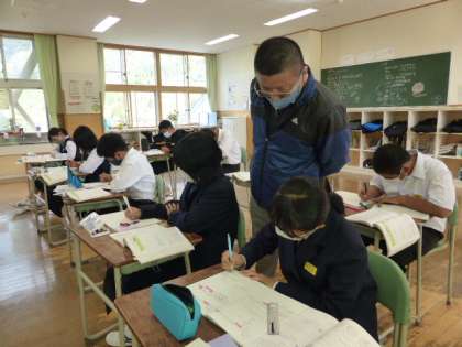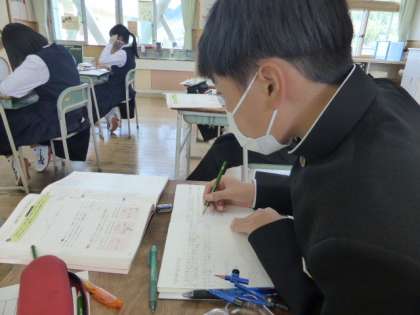 10月26日(火) 1年生の数学の授業の様子です。 垂線の作図と対称移動の作図を学習しました。