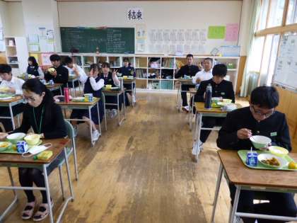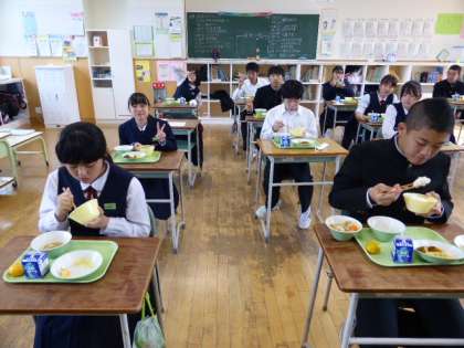 10月26日(火) 3年生の給食風景です。 放送当番の生徒もいました。