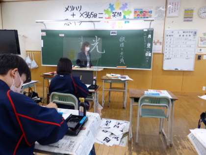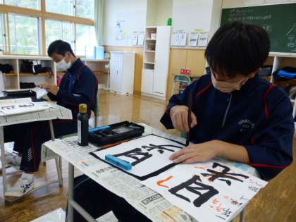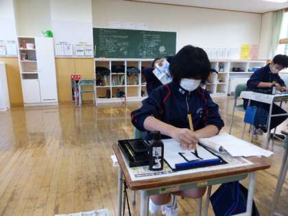 10月26日(火) 1年生の国語は、書道の毛筆を練習しました。