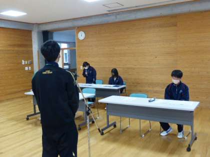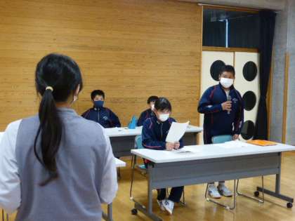 生徒総会リハーサル 公開日 2021/10/26 更新日 2021/10/26 日々の活動から 10月26日(火) 次は、各実践部長からの説明の後で、質疑応答の練習をしました。 明後日に向けてしっかり準備していきましょう。