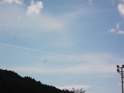 今朝は飛行機雲が一本走っていました。