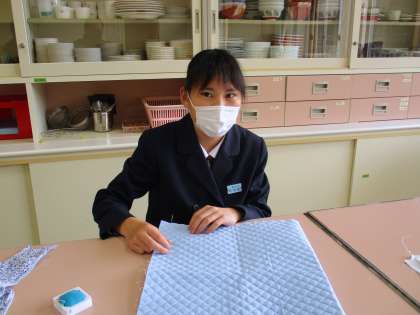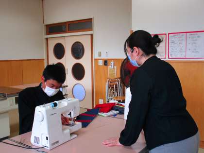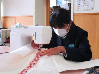 10月27日(水) 2年生の家庭科の授業の様子です。 ミシンでバッグの飾り付けをしています。