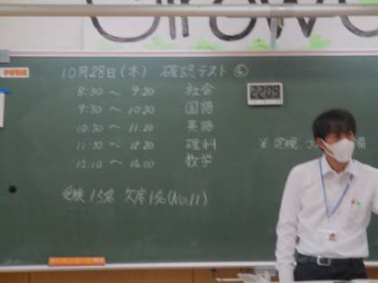 3年1限 第4回確認テスト 公開日 2021/10/28 更新日 2021/10/28 日々の活動から 10月28日(木) 3年生の第4回確認テストの様子です。 1限は社会でした。 全員が真剣に取り組んでいました。