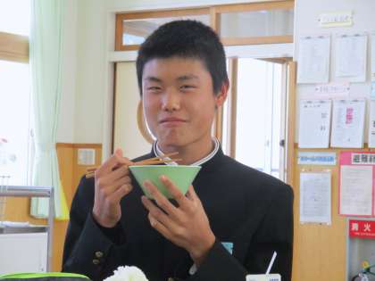 10月29日(金) 2年生の給食風景です。 全員いい顔をしてます。