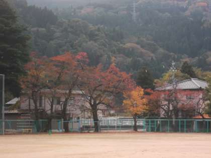 11月1日(月) 今日は、曇り空のためいつもは色鮮やかな紅葉も、ややくすんで見えます。