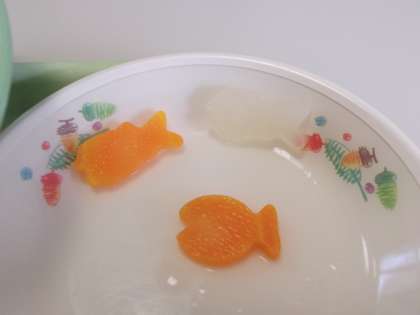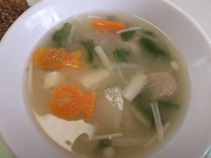 今日は「ぶりつみれ汁」の中に〈魚型〉の《にんじん》と《大根》が入っていました。