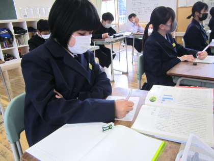 1年3限 国語 公開日 2021/11/02 更新日 2021/11/02 日々の活動から 11月2日(火) 1年生の国語の授業の様子です。 「なぜ仮説が証明されたと言えるか考えよう」という内容の授業でした。