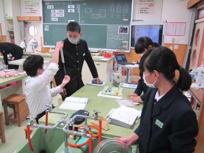 3年4限 理科 公開日 2021/11/02 更新日 2021/11/02 日々の活動から 11月2日(火) 3年生の理科の授業の様子です。 理科室で「水中で働く力」について学習しました。 理科の実験はいつも楽しそうです。